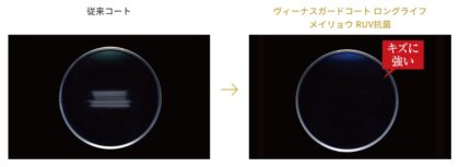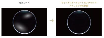 反射率を大幅に抑え、透明感とグレア低減を実現させ、従来のコートと比べ一線を画す次世代のレンズコート。