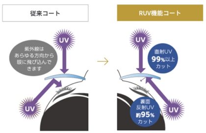 レンズの裏面で反射して入ってくる紫外線もカットし全方位から目元を守ります。