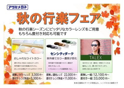 アツミメガネではただいま『秋の行楽フェア』を開催しております