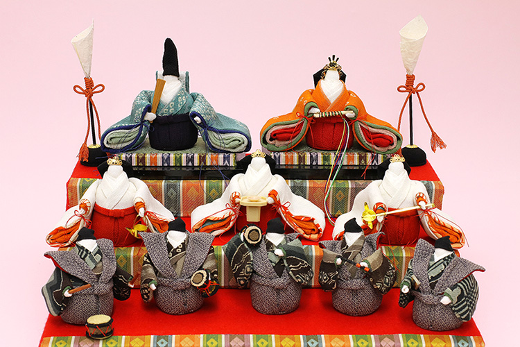 三人官女に五人囃子まで揃って、これだけでも立派な雛飾りです。