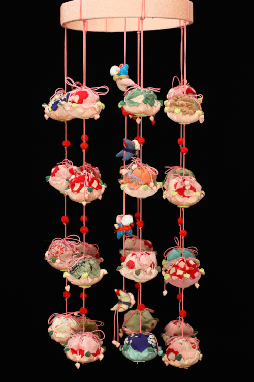 つるし飾りに使うには口紐がないほうがすっきりするようにも思いますが、作者の拘りは実用とお飾りの両立を求めるちりめん細工への思いです。