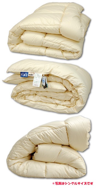 羽毛のようなふんわり柔らかな手触りで丸洗いが可能な高級中綿素材。