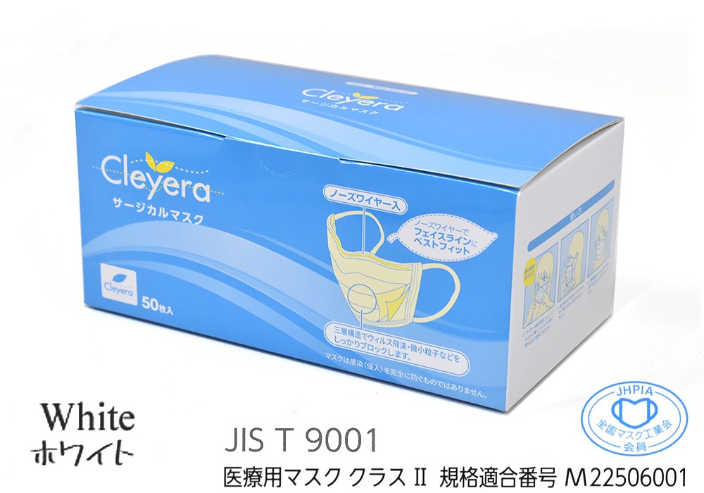 Cleyeraサージカルマスク(ホワイト) 50枚入 医療用マスククラスII 不織布マスク白