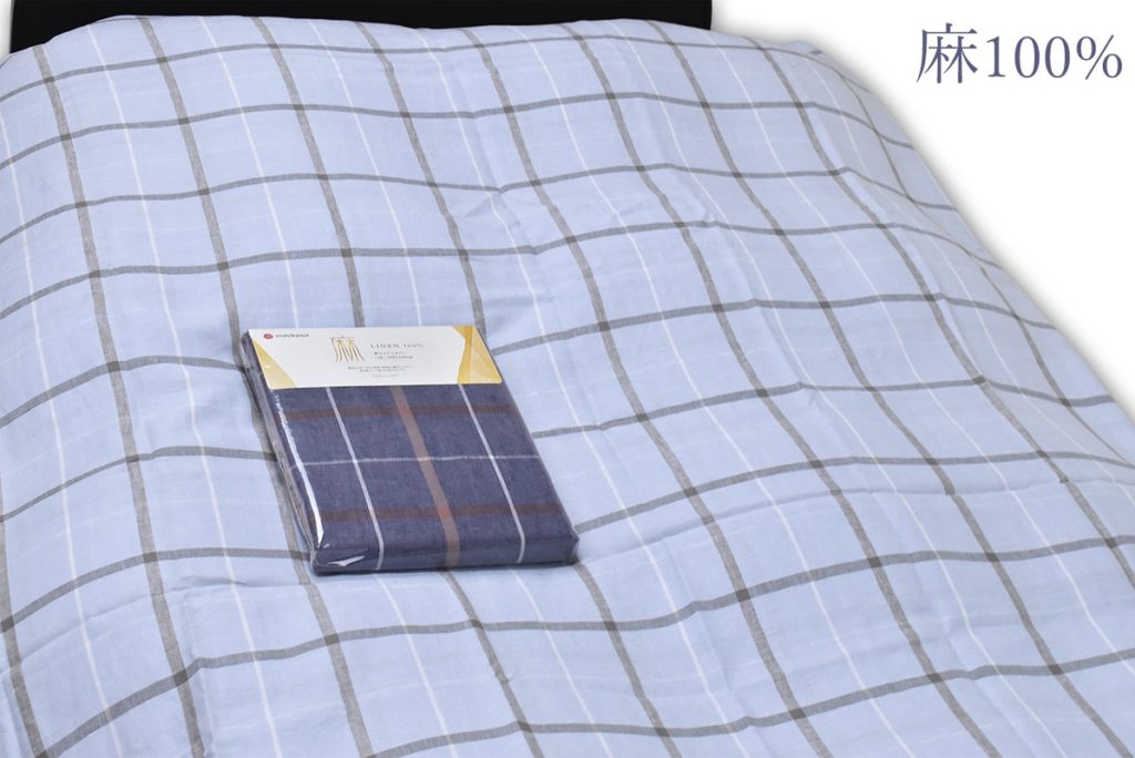 西川リネン掛カバー SLシングル ING0602A 麻100% チェック