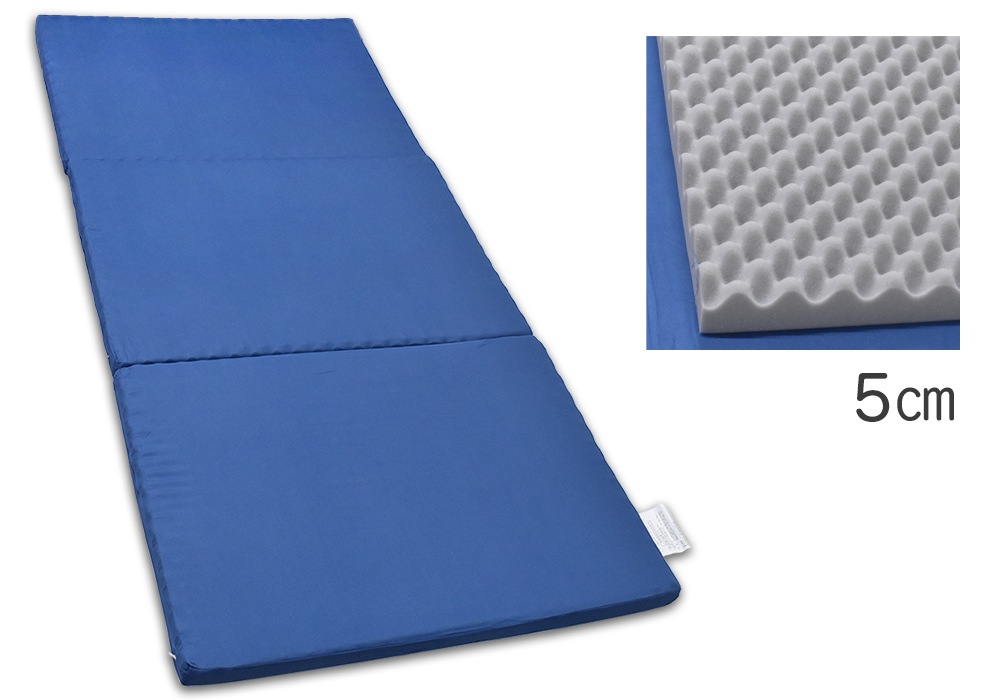マットレス三つ折り5cm シングル、プロファイルかため、ネイビーブルー