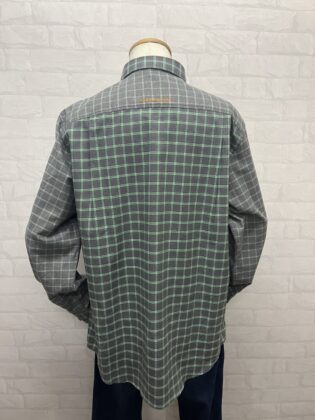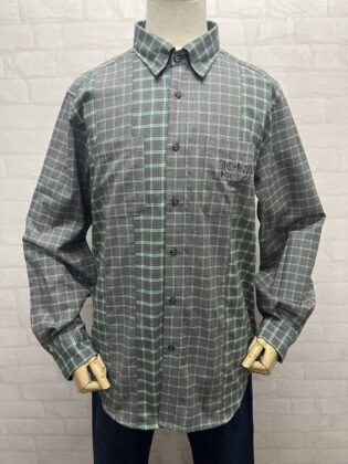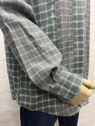 起毛チェック生地の柄違い切替の長袖シャツ。