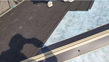 次に防水シートを丁寧に張り、新しい屋根材を重ねて固定。