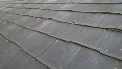 スレート屋根は、平板状の屋根材が重なり合うように設置されています。