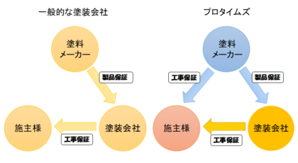 「塗装会社」+「塗料メーカー」から「お客様」に工事保証が出る。