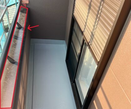 笠木は、ベランダやバルコニーの手すり上部を覆う部材で、水の浸入を防ぎます。