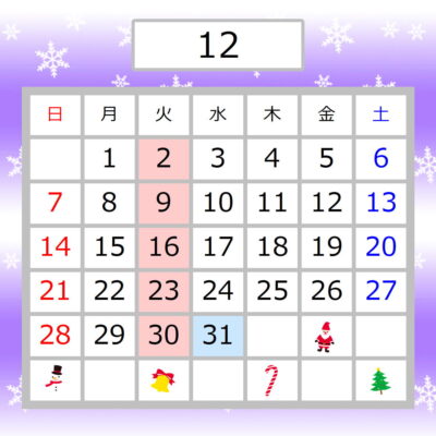 当店店舗の12月の営業のお知らせです。