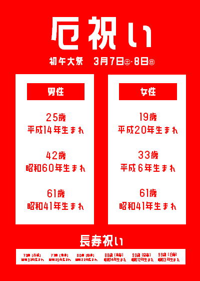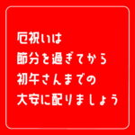 厄祝いは節分(2月3日)を過ぎてから初午(3月9日)までの大安に配りましょう!